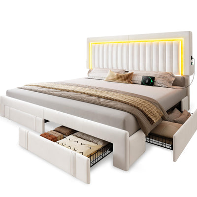 YITAHOME Queen Size Bed Frame with Adjustable Headboard, 4 Storage Drawers and RGB LED Lights, Velvet Upholstered Platform Bed with USB Ports, No Box Spring Needed, Fast Assembly, Noise-Free, Black