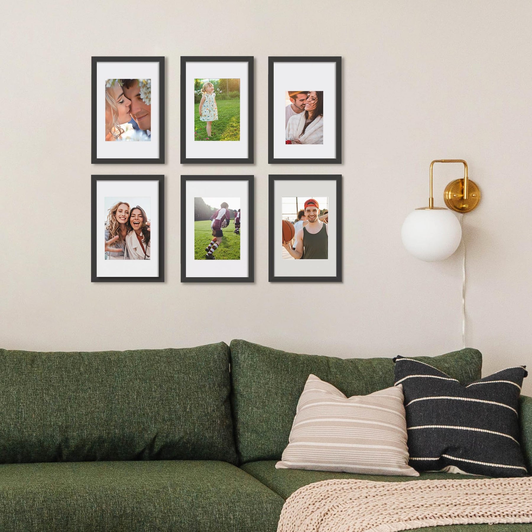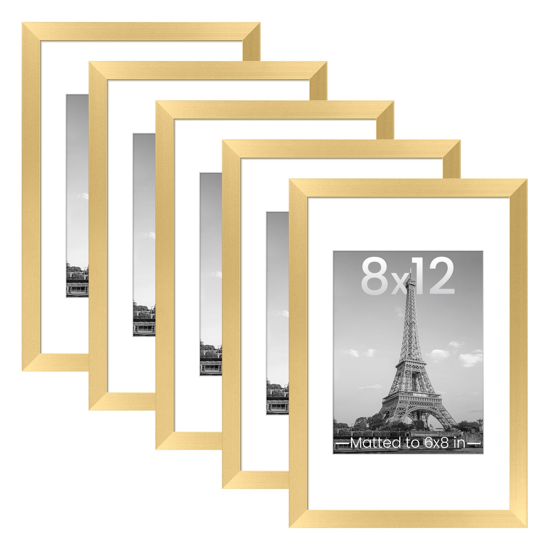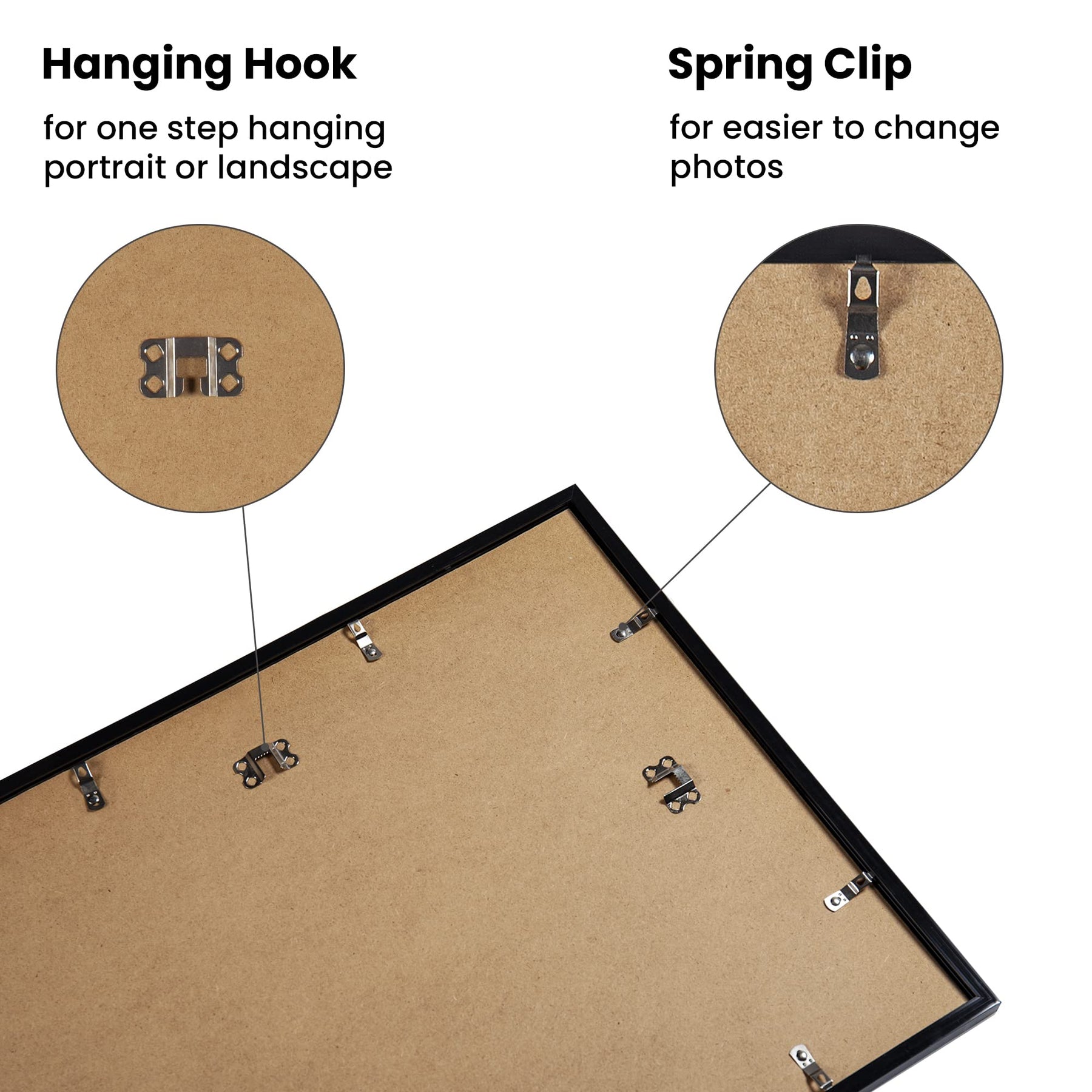 • MULTIPLE FRAMES COLLAGE: Bulk of 5 pieces Picture Frames set in the same Sizes. Perfect for Pictures 5x7 with Mat or 8x10 Without Mat. The frame opening display size will be 0.5 in smaller than the photo to hold the photo in place